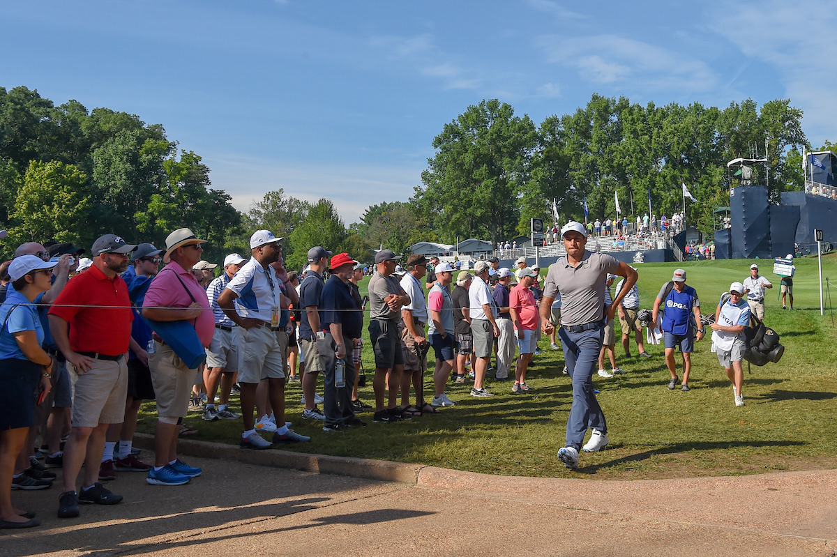 Julian Suri (USA) heads to 11 during 1st round of the 100th PGA Championship at Bellerive Country Club, St. Louis, Missouri. 8/9/2018.